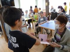 合唱やリコーダー演奏を披露した後、同じグループのおじいさんやおばあさんに飛び出すカードをプレゼントしました。