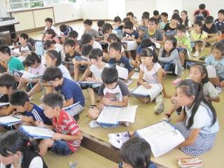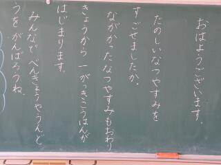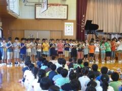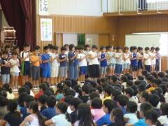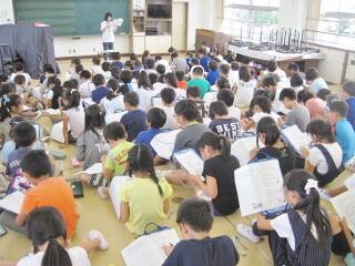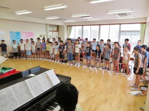 昨日、25日が夏休み最後の合唱練習日となりました。今までの練習の成果を、先生方に披露しました。初めて聴く子どもたちのハーモニーの質の高さに、感動して涙する先生もいらっしゃいました。今年のめあては、地区大会で一番の歌声を響かせ感動させることです。地区大会が、とても楽しみです。さらに、「美しく ヴァージョンアップ」してください。