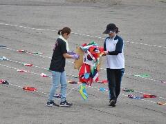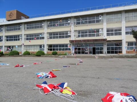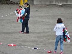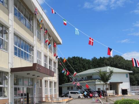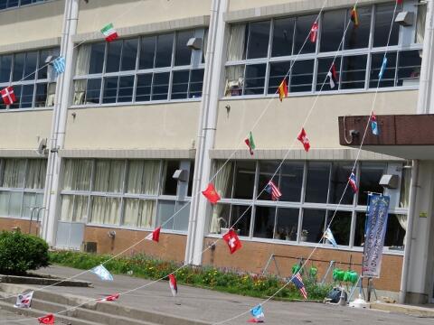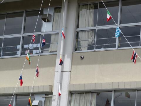 本日、PTA会長さんをはじめPTA役員と教頭・体育部の職員で、運動会に向けて万国旗の準備をしました。