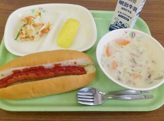「ロングウィンナーをはさんで、ホットドックにしました。」