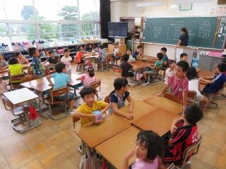 1年生は、初めての夏休みを迎える直前なので、各学級で過ごしました。
