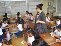 とても楽しく学習が進んでいました。1年1組のみんなは、国際人になりました。