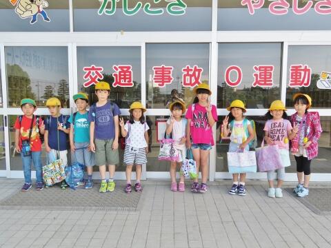 さくら警察署の亀井さん、勝山駐在所の新里さんからスクールガードの意義と注意点について説明していただいた後、16名のスクールガードさんが児童と対面しました。