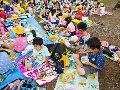 南小学校では、毎年「緑の活動」と「仲間作り」を兼ねて実施しています。今年も、正式なネイチャーゲーム指導員のもと実施しています。
