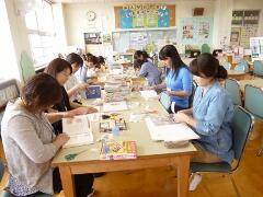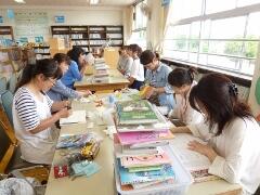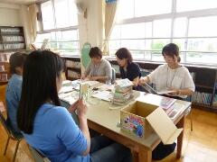 氏家図書館団体貸出の本を、返却する前に全部あるかチェックしていただいています・