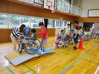 車椅子体験では、マット1枚分の段差でも越えることができないので、車椅子を押す時に前輪を浮かすことを教わりました。ジグザグのコースは自分で車椅子を操作しましたが、上手に曲がることができました。