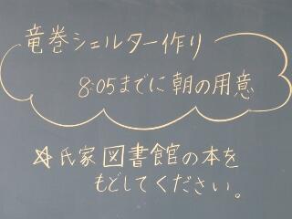 今日の朝の活動は、全学年一斉に竜巻が来た時を想定して「竜巻シェルター作り」を行いました。今日の調子で避難すれば、「安全・安心」が確保されそうです。
