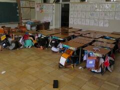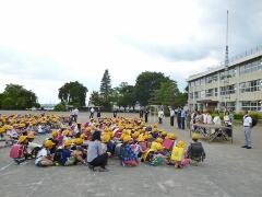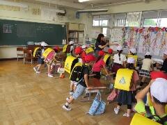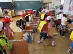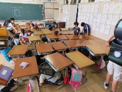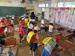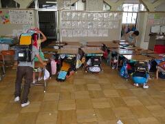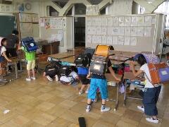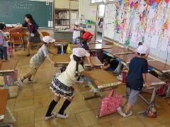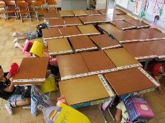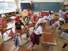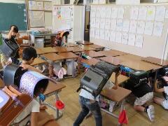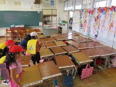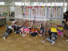 朝の活動の時間を利用し、竜巻シェルター作りの練習を行いました。担任が作り方の説明を行い、1分間以内を目標にして何度も練習しました。子どもたちは有事に備え、一生懸命取り組んでいました。(担当:岡崎教諭)