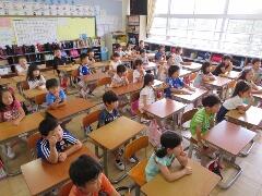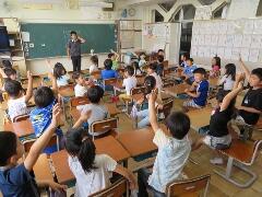 その後、校長先生のお話で「感謝」ということを教えていただきました。「みなさんが一番感謝するのは、お父さん・お母さん・家族の人です。お誕生日には、祝ってもらうだけでなく、ありがとうをいいましょう!」と言うお話に、子どもたちは『生んでくれてありがとう。育ててくれてありがとう。』と言いますと応えました。南小の子どもたちは素直です。