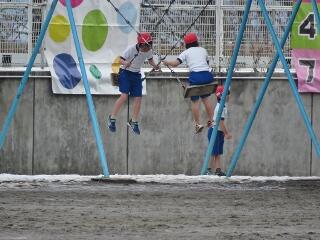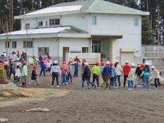 今日は、真っ白な校庭で遊ばせたいと思います。(職員で道路の雪かきをしました。)