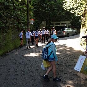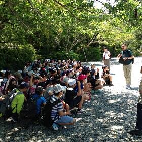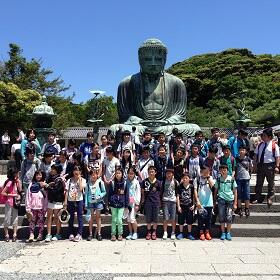 予定より若干早く鎌倉に着きました。鎌倉はいい天気で、暑いくらいです。大仏をバックに全体で集合写真を撮って、各班ごとに自由行動が始まりました。それぞれの見学コースに分かれて出発しました。