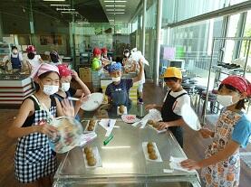 また、「味わい工房」では、“田舎まんじゅう作り”に挑戦しました。子ども達は、協力し合って“まんじゅう”を作りました。自分たちで作った“まんじゅう”をお土産に持ち帰る児童もいましたが、その味は格別においしく感じられたことと思います。