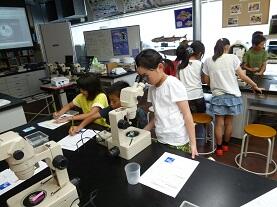 「おさかな研究室」では、顕微鏡コースの体験をしました。理科の学習で取り組んでいる「メダカの学習」についてメダカの誕生など色々と教えていただき理解を深めることができました。