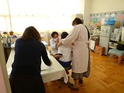 今日も、子どもたちは礼儀正しく、静かに検診を受けることができました。