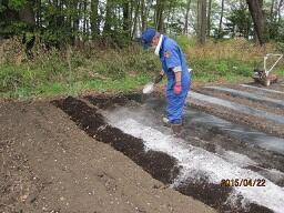 事前に、ボランティアの福島さんの協力により、校舎裏の農園を整備していただきました。しばらく、新校舎建設のために農園活動ができなかったので、畑には大きな石があったり、肥料が無かったりと下準備には1日を要しました。