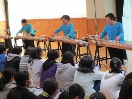 1月15日(水) 情報教育・2年 心を合わせて演奏:音楽朝会