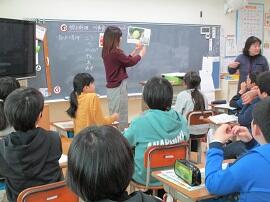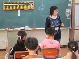3年生の書写の授業では、講師の先生が来てくださいました。