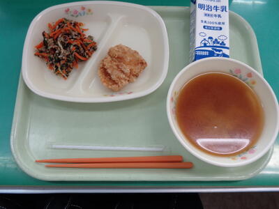 ごはん 牛乳 厚焼き卵 くきワカメの五目きんぴら 豆腐とわかめの味噌汁
