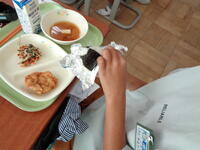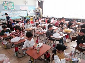 いつもの給食とは、また違った楽しみがあるようです。「卵焼きはお手伝いして作ったよ」と、お弁当作りに挑戦した子も多くいました。