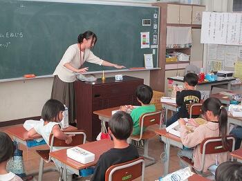 1年生は、学級活動の時間で、栄養士の先生から、体を作る栄養について学習しました。少し難しい学習でしたが、みんな真剣に話を聞いていました。