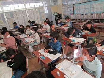 本日は、1年生から6年生までが、国語科と算数科の学力調査を実施しました。これまで学習してきたことの定着を確かめるテストです。朝の活動では、漢字の見直しや計算問題など、最後の確認をしていました。