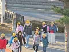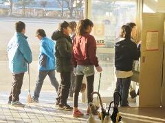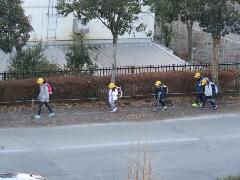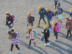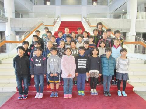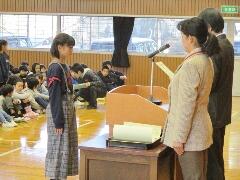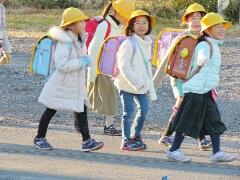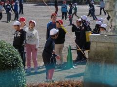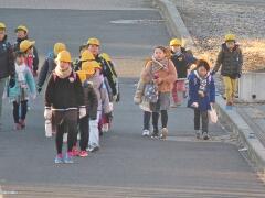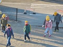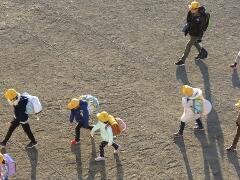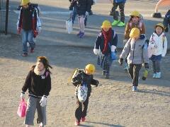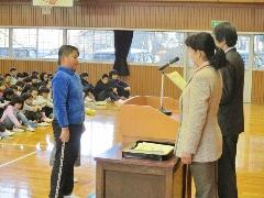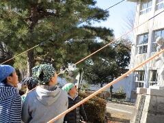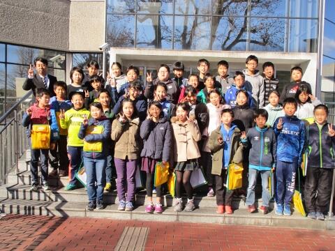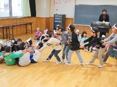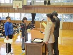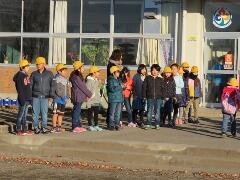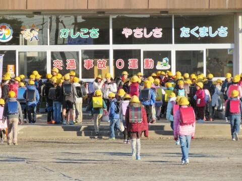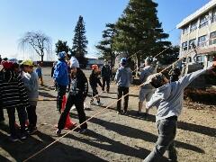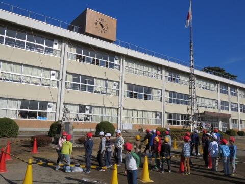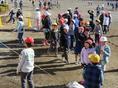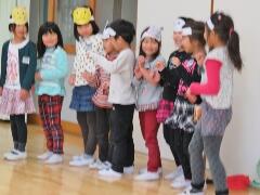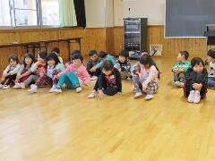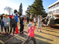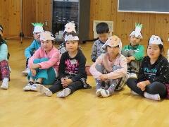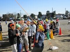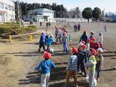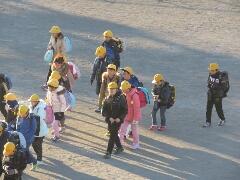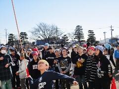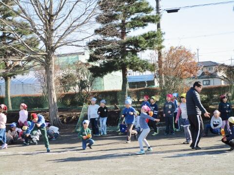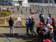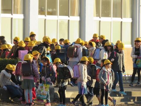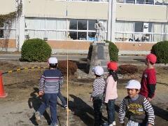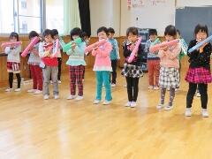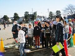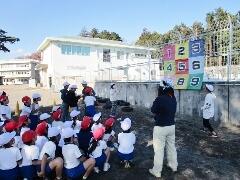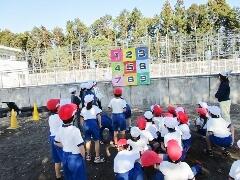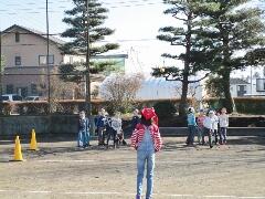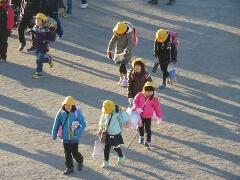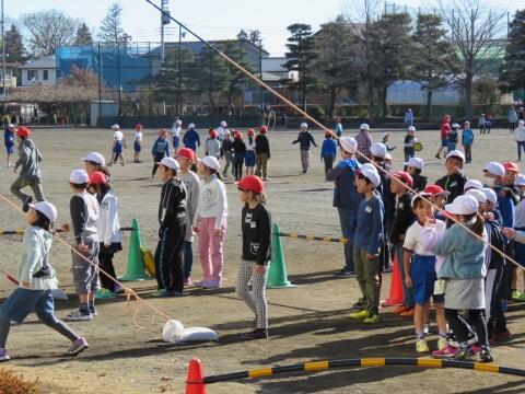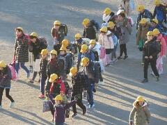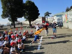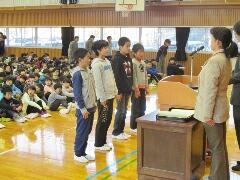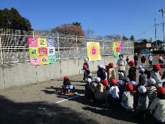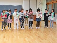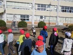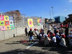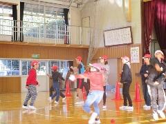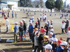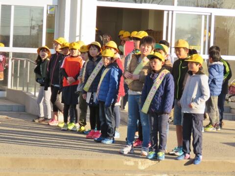 初めは、恥ずかしさと寒さで声が小さかったのですが、次第に声も大きくなり爽やかな大きな声が校庭いっぱいに響き渡りました。