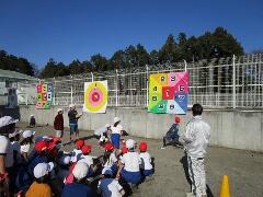 2年生みんなで、運動委員会の体力向上イベントに参加しました。プールのフェンスに掛けられた、大きな的に向かって、一人3個ずつ球を投げました。合計得点で順位が決まると聞いて、どの子も高得点の的をねらって球を投げていました。どのクラスも、一球投げるごとに「おお!!」と歓声が上がり、拍手が聞こえ、とても盛り上がった楽しい時間となりました。今日のイベントをきっかけに、ねらったところに球を当てたり、遠くへ投げたりする力をつけてほしいです。 (担当:三尾谷)