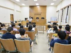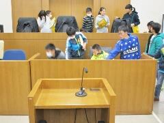 普段なかなか行くことのない裁判所では、移動のたびに「静かにお願いします。」と言われました。人はあちこちにいるのに、しんと静まりかえり、緊張して足を進めました。法廷の場にも入れてもらい、裁判官の姿になったり、弁護人や検察官のまねをしたりと楽しみながら活動しました。