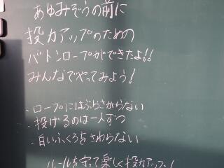 今日は、5年生の「投力向上イベント」でした。屋上から設置された「投力向上バトン」