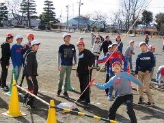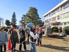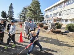 投力向上対策の一環として、運動委員会主催のイベントを学年ごとに実施しています。3年生は、スカッドボーイというゴム製の道具を使い、飛んだ距離を競いました。上手に飛ばすと、ヒューッと音が鳴る仕組みです。一番飛んだ子で25m。1・2・3位は野球部のメンバーでした。さすがです。このイベントをきっかけにし、投げる運動の楽しさに触れますます投力向上に励んでほしいと願っています。