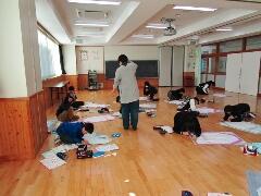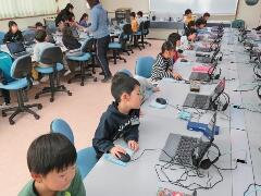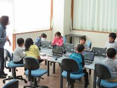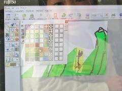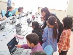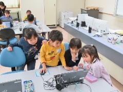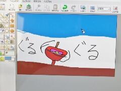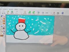 マウスの使い方に慣れるために、ゲームや手拍子でのリズム打ちなどをしながら、ワンクリック、ダブルクリック、ドラッグなどのやり方を教わりました。子供たちの小さな手にはマウスは少し大きく感じましたが、どの子も一生懸命画面を見ながらマウスを動かして、カレンダー用の絵を描きました。