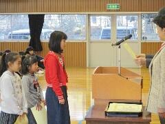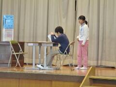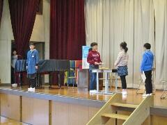 今回の図書委員会の発表は、舞台上で図書室の使い方について、「悪い例」を劇にして分かりやすく発表しました。6年生を中心に自分たちで劇を考え、繰り返し練習したので、とても上手に発表できました。全校生の前での発表は緊張したようですが、大きな自信にもなったようです。