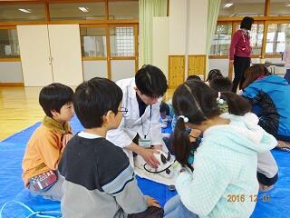 獣医さんをお招きして、うさぎの生態を学びました。うさぎの心音を聴診器で聞いて、その速い音に驚いたり、やさしく抱っこしたりしました。