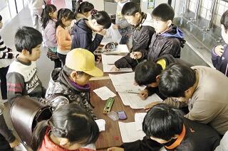 中継車、鉄塔などを見学した後、グループごとに番組作りを体験しました。ディレクター、キャスター、カメラマンなどを全員体験しました。映像の流し方やニュースの伝え方を教わり、緊張しながらも楽しそうに活動していました。たまにはNHKものぞいてみましょう。 (担当:塚原)