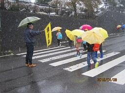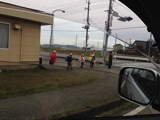 横断歩道では、止まってくださった車のドライバーさんにお礼の挨拶をする子ども達の姿が見られ、朝のせわしい時間の中ですが、運転するドライバーさんにも“ホッ”とする心のゆとりが得られ、やさしい気持ちで通勤できるのではないかと思いました。
