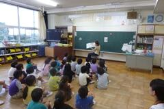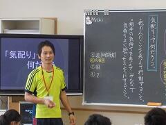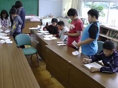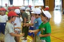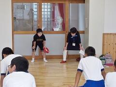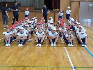 「おうさん」という鬼ごっこを教えてもらいました。1年生にはルールが難しいかなと思いましたが、ルールを守って仲よく活動できました。担当の根無さんにも「じょうずにおにごっこを楽しんでいました。200点!」とおほめのことばをいただきました。(担当:三尾谷)