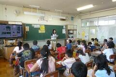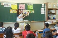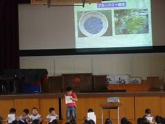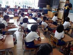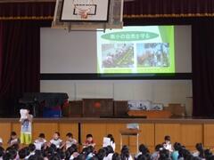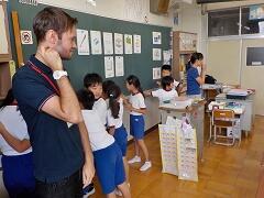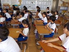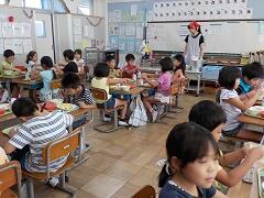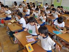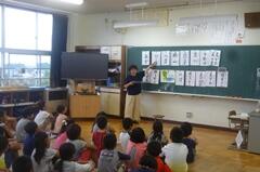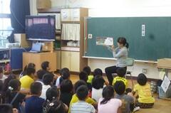 4校時に、2年1組にお邪魔しました。くだものやどうぶつの名前を、英語で表現していました。発音も、なかなかなものです!