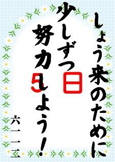 4年2組のみなさんも、自分のめあてに向かってよく努力しましたね。とてもよくみなさんの頑張りが伝わってきました。これからも、「小さなことを積み重ねることが とても大事」です。