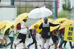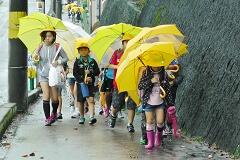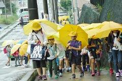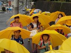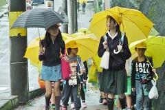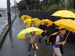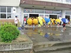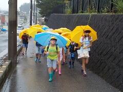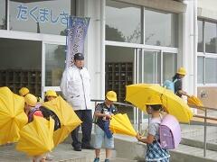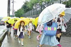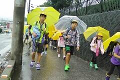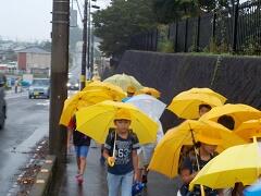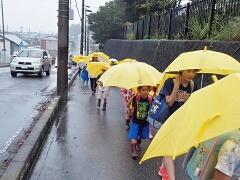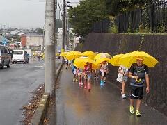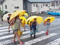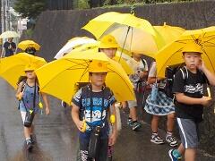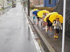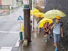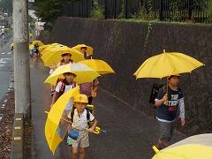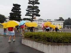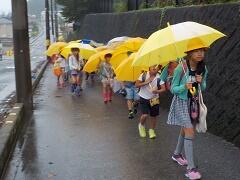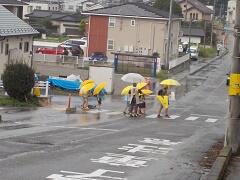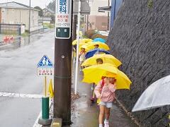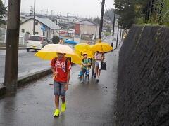 今朝は、どうにか降られずに登校できました。今日の下校、明日の登校がちょっと心配です。学校でも、帰りに安全な登下校について指導いたしますので、ご家庭でも明日の朝の登校について一声掛けてあげてください。よろしくお願いいたします。