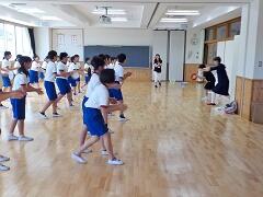 いよいよ基本の動きがわかってきましたので、高学年も外での練習となりました。途中、5年生も6年生もスター気分で「エグザイル」になったようでした。