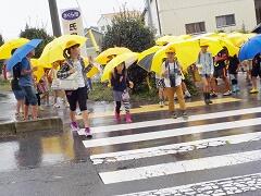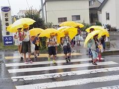 今日は、傘が必要な登校となりました。それでも、休日明けにもかかわらず「しっかり あいさつ」できました。