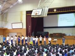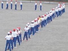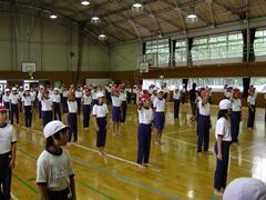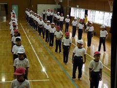 今日は、初めての全体練習です。「入場行進」を中心に練習しました。初めての練習で仕上がってしまいました。普段の指導の成果です。