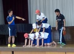5年生・6年生は、今日は外での「表現運動」の練習を中心に行いました。特に、いろいろなバリエーションの「クイックピラミッド」を念入りに行いました。