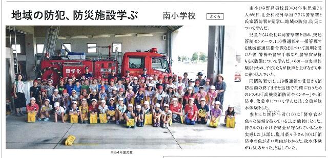 本日9月16日発行の「とちよみ」(新聞折り込み)に、本校の4年生の校外学習『地域の防犯、防災施設学ぶ」の記事が掲載されております。是非ご覧ください!(詳しくは、「とちよみ」を参照して下さい。)