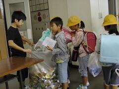 今朝も、たくさんのアルミ缶ありがとうございました。ボランティア委員会の児童の皆さん、アルミ缶回収ごくろうさまでした。