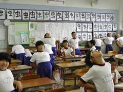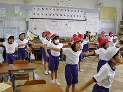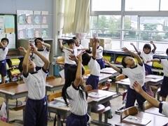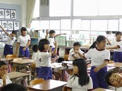 4年生の熱血指導を受け、3年生が「よさこい」の練習を頑張っています。かけ声は、絶好調です。お楽しみに!