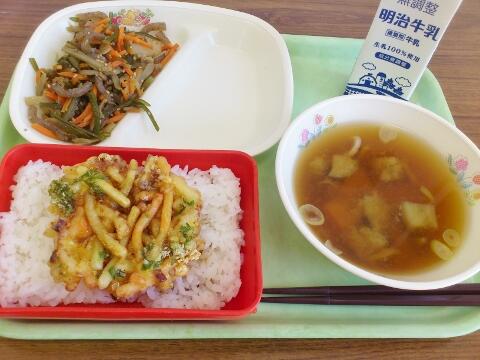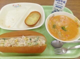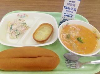 今日の「満点味噌汁」についてです。9月18日月曜日は、敬老の日ですね。今日は、その日にちなんで長寿献立となっています。みなさん、「まごわやさしい」という言葉を知ってますか。これは、昔から日本にある健康食材のゴロあわせです。「ま」は、豆から大豆製品。「ご」は、ゴマやナッツ類。「わ」は、ワカメなどの海藻類。「や」は、野菜類や根菜類など。「さ」は、魚類で、小魚や貝類。「し」は、シイタケからきのこ類。「い」は、芋類、里芋、かぼちゃなどです。今日のみそ汁はこの「まごがやさいし」食材を取り入れた、栄養満点のみそ汁です。どんな食材が入っているか、確認しながら味わってください。