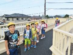 おはようございます。歩道橋の上で南っ子の元気なあいさつが響き渡りました。