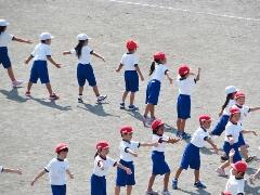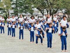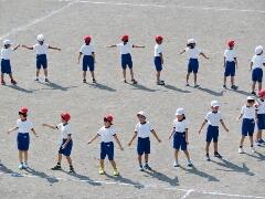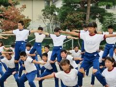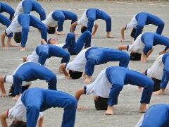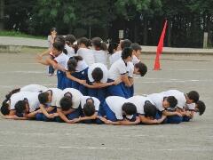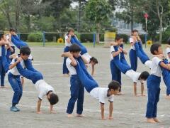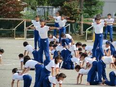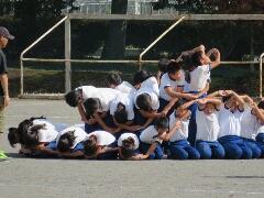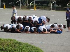 校庭での組み体操の練習を、遠目から見てみました。「よい姿勢」が際立ってきました。
