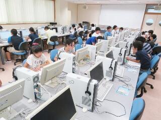 6年生は、「環境(ゴミ問題)」についてパソコンを駆使して調べていました。地球の未来は明るいです。どこかのオフィスのような感じで黙々と・・・